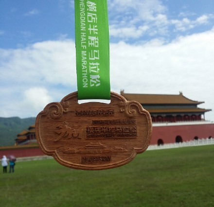 跑到終點(diǎn)后,更讓選手們亮瞎眼。橫店所在的東陽(yáng)市以東陽(yáng)木雕而聞名中外,比賽的完賽獎(jiǎng)牌就是用名貴的緬甸花梨木為原料、經(jīng)木雕大師陸光正設(shè)計(jì)、用傳統(tǒng)的木雕工藝制作的原汁原味的紅木獎(jiǎng)牌。據(jù)說(shuō)這塊光這塊獎(jiǎng)牌就價(jià)值在百元左右,已經(jīng)值回報(bào)名費(fèi)了。更不用說(shuō)完賽包中的功能性飲料和能量膠,以及組委會(huì)提供的專業(yè)賽后拉伸修復(fù)服務(wù)了。
